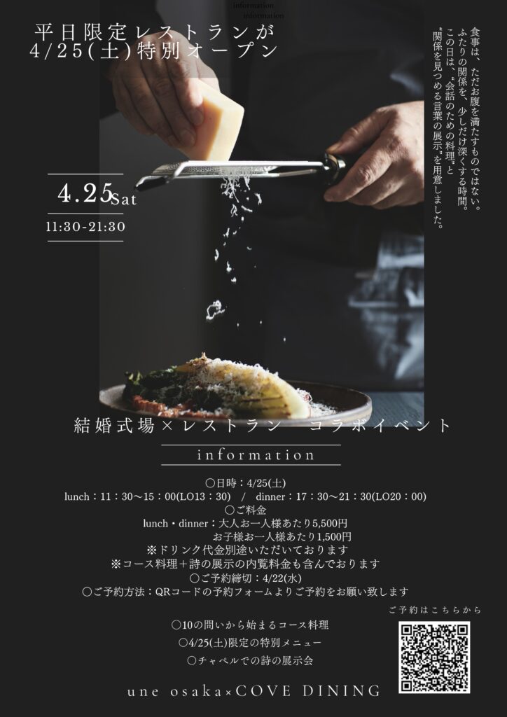 ※コース料理+詩の展示の内覧料金も含んでおります